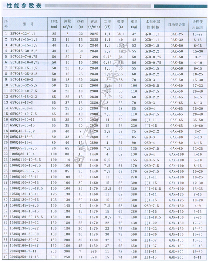QW高效無堵塞潛水排污泵使用說明