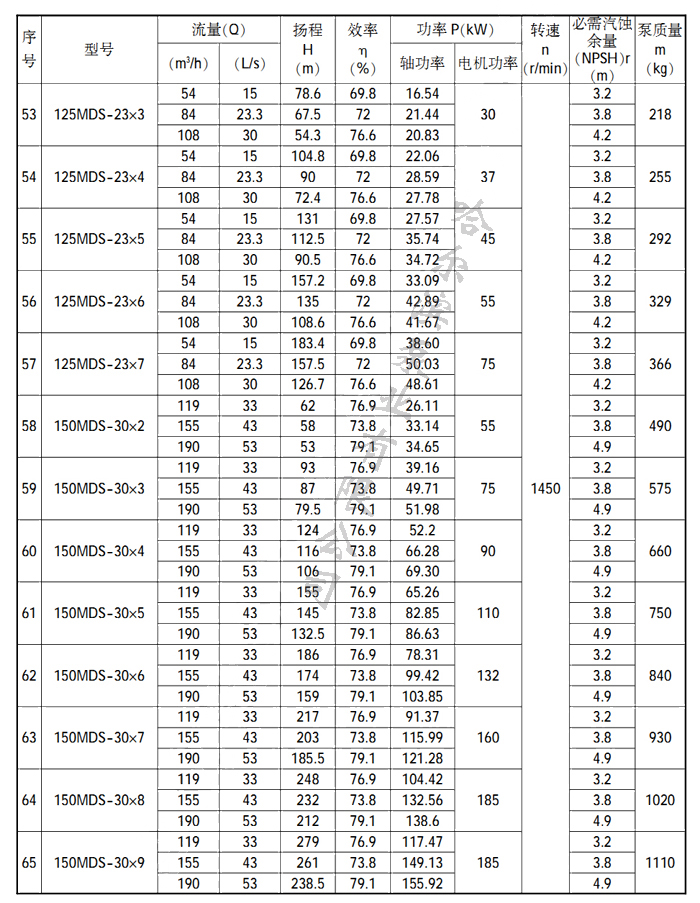 MDS 系列雙渦殼多級離心泵是根據本廠引進日本荏原公司技術生產MS 型泵的基礎上,對原有的產品改進而形成的,改進了該泵的平衡盤,平衡環和主要過流部件的材質,該泵運行平穩,性能穩定,適用于煤礦、工廠及其它場合輸送固體顆粒含量 不大于1.5%(粒徑小于0.5mm)的中性液體介質、介質溫度≤80℃。