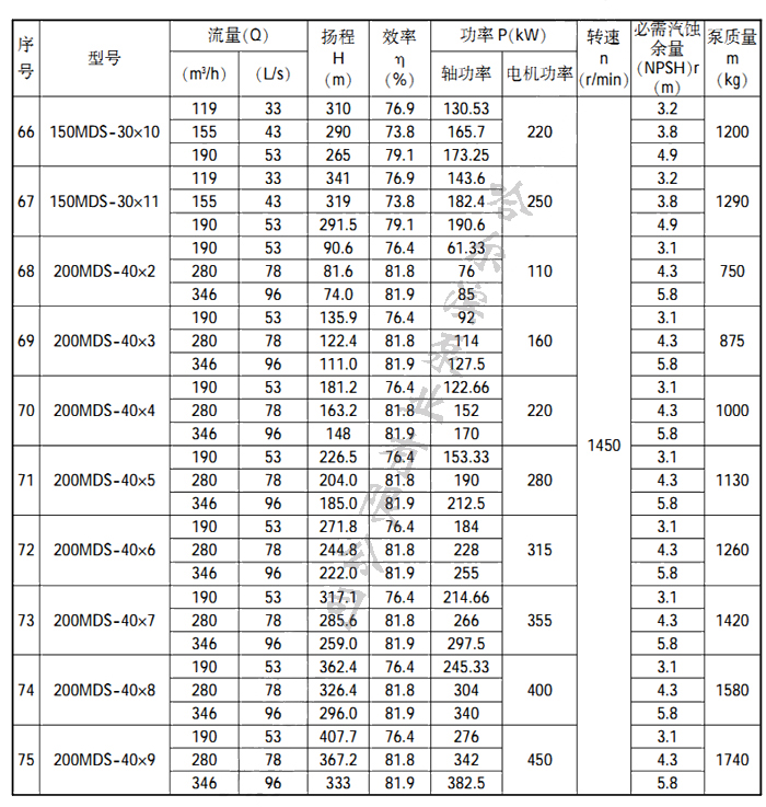 該系列泵共9個規格74個型號,泵進出口徑:25-200(mm)。