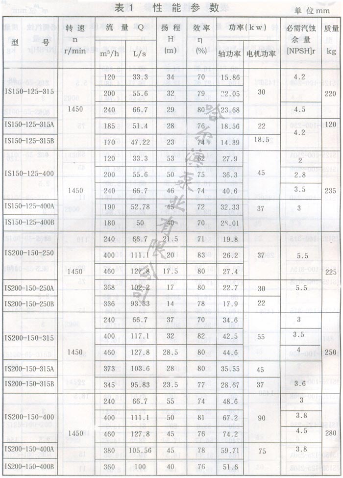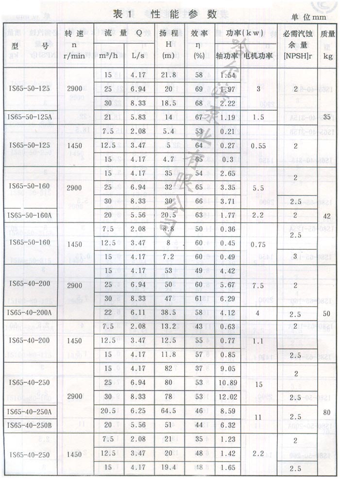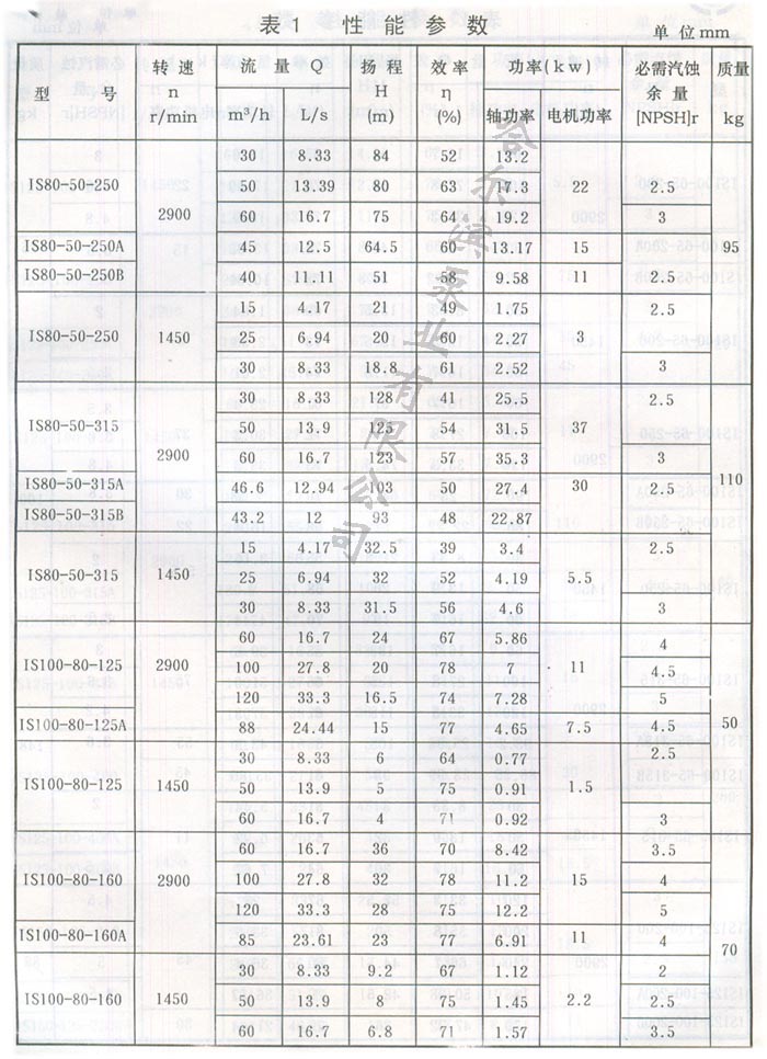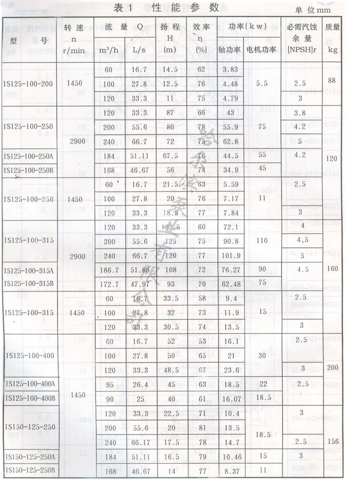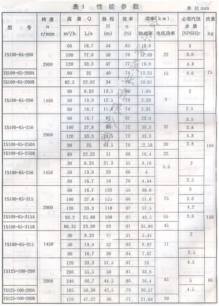 IS型系列性能范圍(按設(shè)計(jì)點(diǎn)計(jì)):